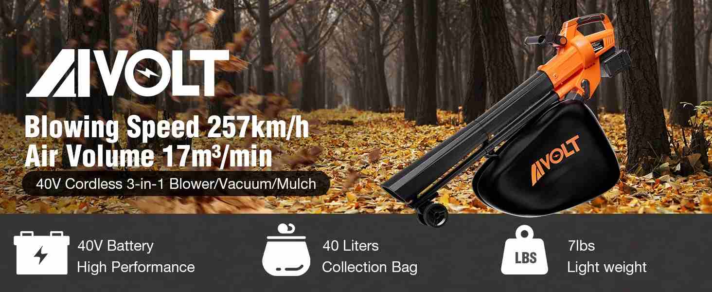 The cordless leaf blower vacuum mulcher is an incredibly practical and convenient piece-of-equipment modern yard care can offer. It is able to perform all the functions of traditional raking and bagging while boasting powerful airflow and efficient vacuuming and mulching. AIVOLT 40V model allows homeowners to take care of leaf cleanup in record time without physical strain, tangled cords, or endless trash bags.