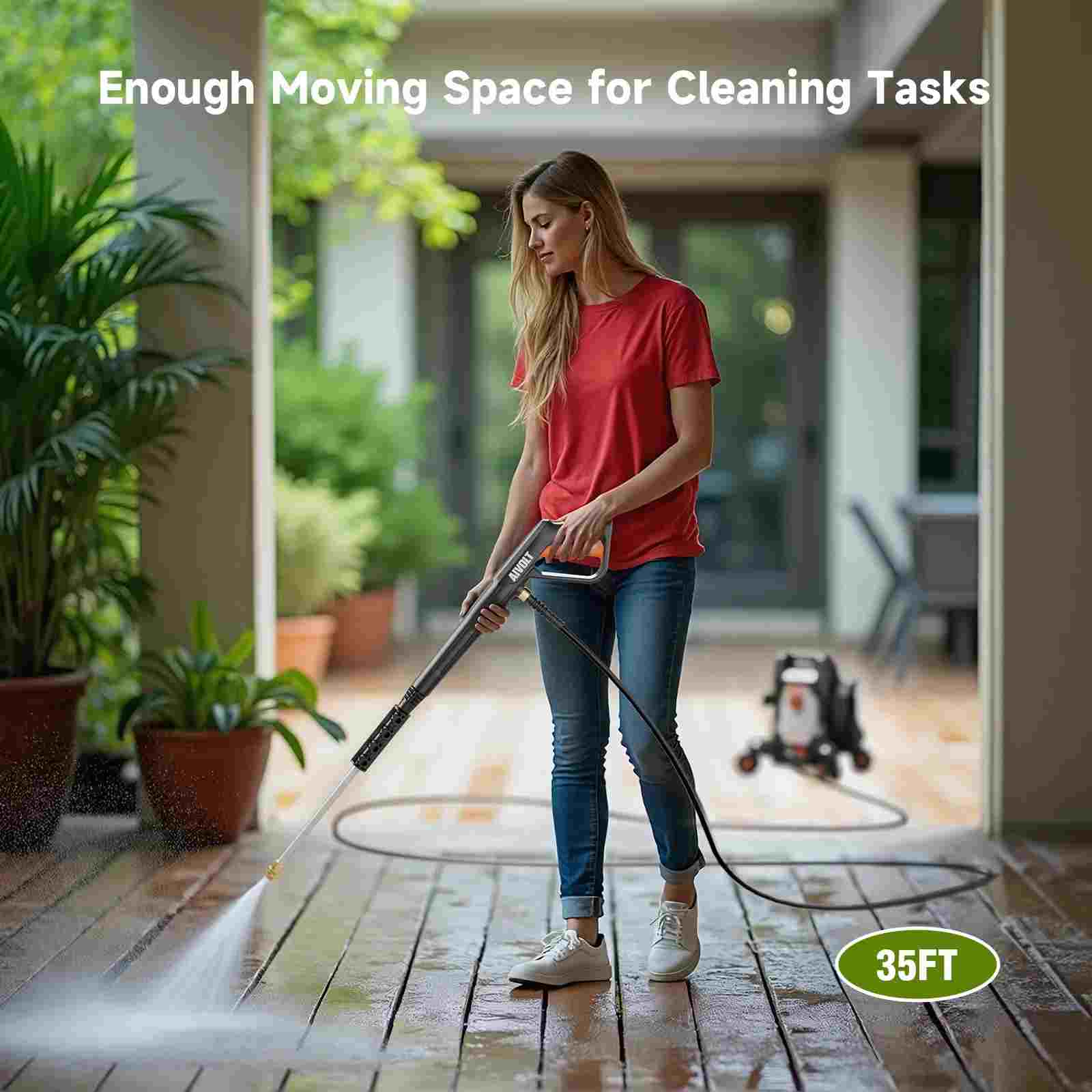 Cleaning power is measured by PSI (pounds per square inch)—choose 1500–2500 PSI for general home use (like car washing, fences) or 2500+ PSI for dealing with the toughest stains (driveways, decks). The efficiency is dictated by GPM (gallons per minute); the range of 1.5–2.5 GPM ensures the process of cleaning is fast and complete. AIVOLT’s corded models (3000–5000 PSI) have set the standard—be on the lookout for cordless options with similar power for the most demanding projects.