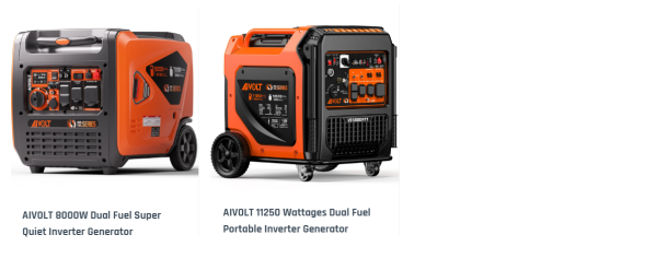 AIVOLT currently offers two main dual-fuel models: the 8000W dual-fuel ultra-quiet inverter generator ($1399) and 11250W dual-fuel portable inverter generator ($2199). Both switch seamlessly between gasoline and propane with a simple fuel switch, no complex operations needed.